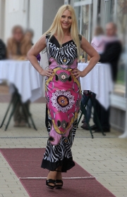 Sommerkleid mit original Seidenmalerei eingesetzt dazu elegante Lederimmitationsjacke | |